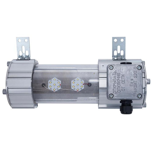 Оболочка светильника состоит из светопропускающего элемента – трубы из поликарбоната, герметично заделанной в два корпуса из алюминиевого профиля, что делает эту оболочку неразборной. С обеих сторон оболочка светильников соединяется с крышками посредством резьбового лабиринта, обеспечивающего требование ограниченного пропуска газов. Конструкция светильников допускают как тупиковый, так и транзитный монтаж светильников. Корпуса светильников имеют пять специальных пазов, которые позволяют крепить практически любые монтажные конструкции из металлических пластин с отверстиями при помощи болтов или гаек М6.