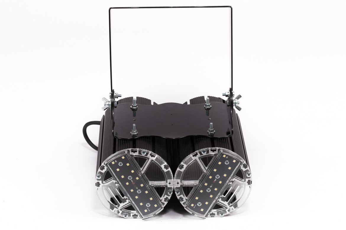 Прожектор светодиодный 100 Вт уличный — это X-RAY Lira 100 с поворотным креплением. Удобен для уличного освещения зданий, архитектурной подсветки. Рекламные билборды и баннеры также могут стать его объектами освещения. В прожекторах модельного ряда X-RAY использованы мощные светодиоды NICHIA 219 С серии — по 16 светодиодов с общим световым потоком в двух модулях на 11 000 Лм. Отметим, что высокое значение коэффициента цветопередачи (не менее 70 Ra) также  присуще светодиодам NICHIA, что обеспечивает светотехническим приборам на их базе способность к естественной цветопередаче.