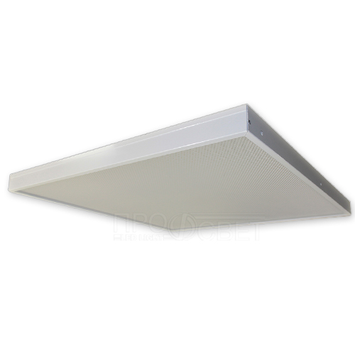 Светильники для использования в административных и офисных помещениях, со степенью защиты IP20 (IP40 под заказ). Могут как встраиваться в подвесные потолки армстронг, так и крепиться как накладные на ровную поверхность. Корпус изговлен из листовой стали 0.5мм, окрашен белой порошковой краской, имеет поворотную планку для удобства монтажа.