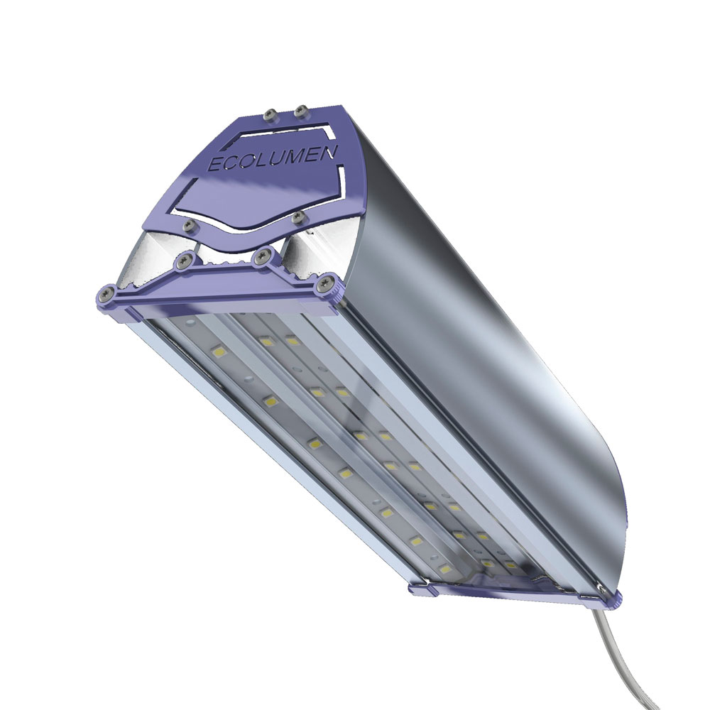 Сферы применения уличных светодиодных светильников консольных, сокращенно «Эколюмен УССК»: Освещение автомобильных дорог, автомагистралей, мостов, улиц, транспортных развязок. Освещение тротуаров, пешеходных дорожек и переходов, дворовых территорий. Дворовых территорий, автостоянок. Охранное освещение, освещение периметра и территорий предприятий. Осветительные системы железнодорожных объектов. Общее или локальное освещение. Специальная конструкция корпуса с повышенным отводом тепла за счет эффекта тяги позволила существенно уменьшить массу изделия и снизить нагрузку на несущую опору. Высокая эффективность светодиодов до 180лм/вт позволят получить достаточную освещенность объекта при более низкой мощности светильника. Защита от длительных напряжений до 420в и грозовая защита до 6кВ существенно увеличивают надежность и срок службы светильника. Модульная модель светильника позволяет получить прожекторы мощностью до 750Вт и световым потоком до 120 000 Лм. Все светильники соответствуют требованиям ТР ТС 004/2011 «О безопасности низковольтного оборудования» и ТР ТС 020/2011 «Электромагнитной совместимости технических средств» подтвержденные сертификатом ТС.